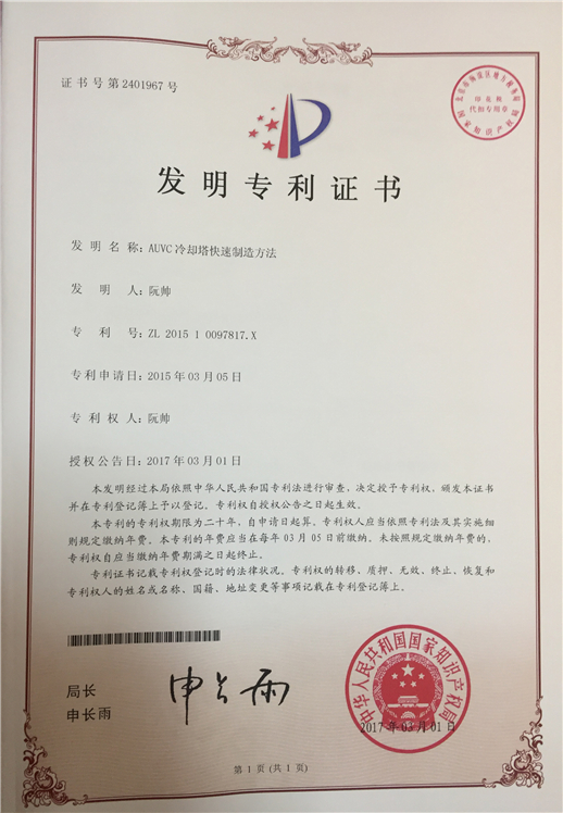 AUVC冷卻塔快速制造方法(發(fā)明專利)