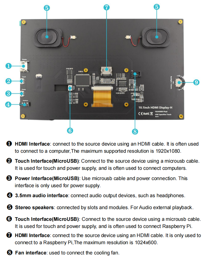 10.1寸IPS觸摸顯示器1024*600 HDMI接口帶立體聲揚(yáng)聲器