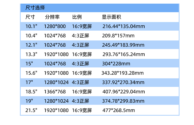| 屏幕面板 | 工控A規屏 TFT面板 |